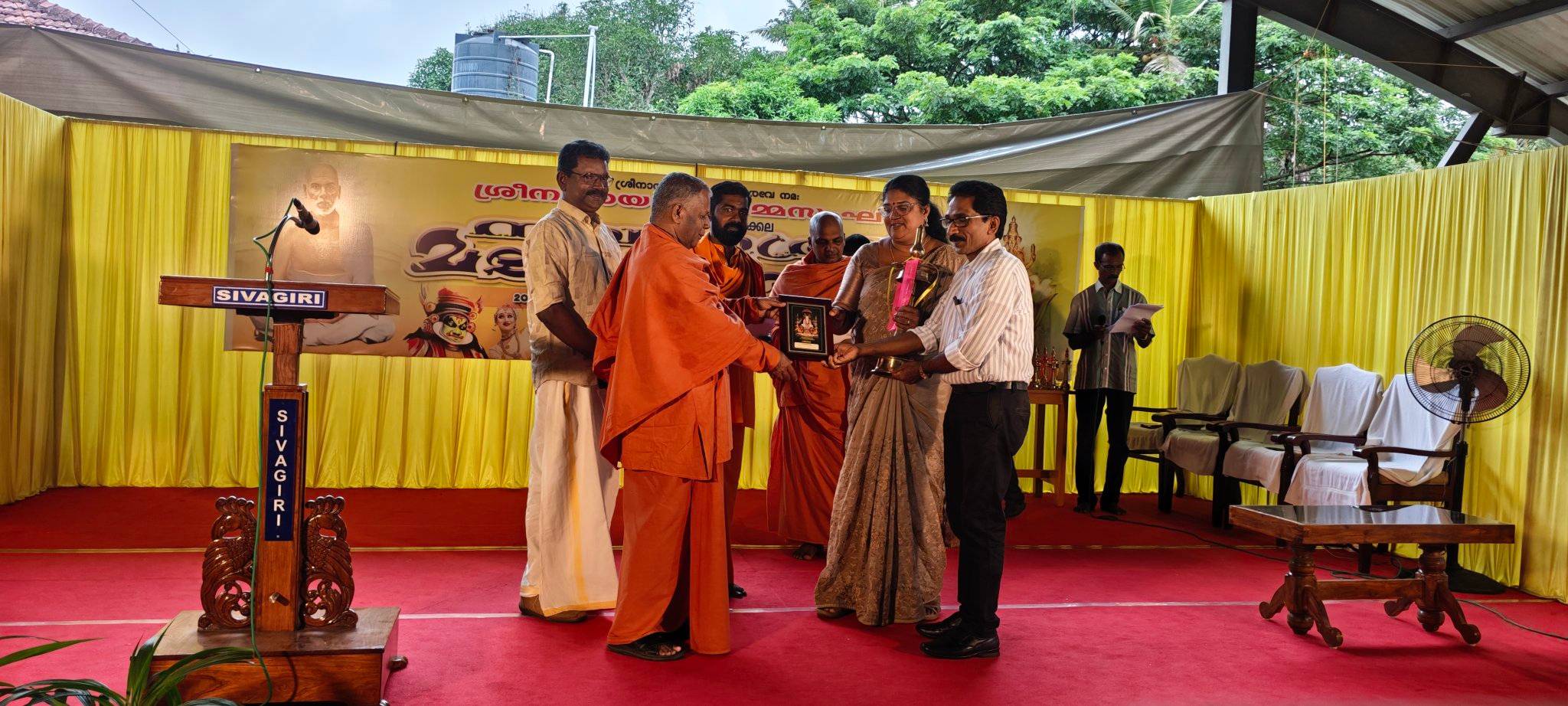171 - മത് ഗുരുദേവ ജയന്തിയോടനുബന്ധിച്ച് നടത്തിയ ഘോഷയാത്രയിൽ പങ്കെടുത്തു വിജയംവരിച്ച സംഘടനകൾക്കും സ്ഥാപനങ്ങൾക്കുമുള്ള ട്രോഫികളും ക്യാഷ് അവാർഡും ശ്രീനാരായണ ധർമ്മസംഘം ട്രസ്റ്റ് ജനറൽ സെക്രട്ടറി സ്വാമി ശുഭാംഗാനന്ദ വിതരണം ചെയ്യുന്നു.