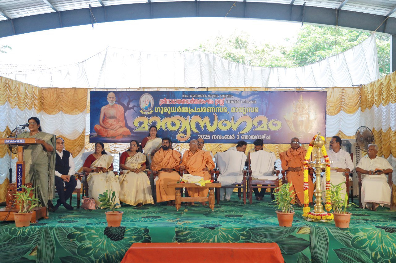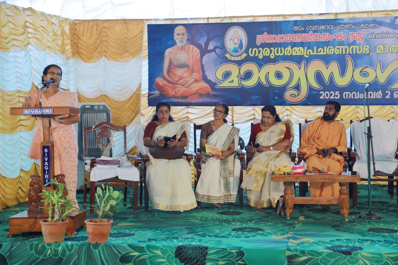 ഗുരുധര്മ്മ പ്രചരണ സഭ കേന്ദ്ര സെക്രട്ടറി സ്വാമി അസംഗാനനഗിരി സംഘടനാ സന്ദേശം നല്കി. മാതൃസഭ പ്രസിഡന്റ് ഡോ. സി. അനിതാ ശങ്കര്, അഡ്വ.വി.കെ മുഹമ്മദ്, പുത്തൂര് ശോഭനന്, ഡോ.സനല്കുമാര്, മണിയമ്മ ഗോപിനാഥന്, രാജേഷ് സഹദേവന്, അഡ്വ.സുബിത്ത്.എസ്. ദാസ്, മാതൃസഭ സെക്രട്ടറി ജി.ആര്. ശ്രീജ എന്നിവര് പ്രസംഗിച്ചു. ബീന അന്തേല് ഗുരുസ്മരണ നടത്തി. കൃഷി ജീവരാശിയുടെ നട്ടെല്ല് എന്ന വിഷയത്തില് അഗ്രികള്ച്ചറല് യൂണിവേഴ്സിറ്റി അസിസ്റ്റന്റ് പ്രൊഫസര് ഡോ.എം. ലേഖയും, സ്ത്രീശാക്തീകരണം ഗുരുദേവദര്ശനത്തിലൂടെ എന്ന വിഷയത്തില് ഡോ.അനിതാ ശങ്കറും തുടര്ന്ന് ക്ലാസുകള് നയിച്ചു. ശൈലജ പൊന്നപ്പന്, ഷാലി വിനയന്, ഗൗരി ടീച്ചര്, ലീലാ ബോസ് എന്നിവരും പ്രസംഗിച്ചു. സംസ്ഥാനത്തെ എല്ലാ ജില്ലകളില് നിന്നും മാതൃസഭ പ്രവര്ത്തകര് സംഗമത്തിന് എത്തിച്ചേര്ന്നു. സ്വാമി അംബികാനന്ദ, സ്വാമി ഹംസതീര്ത്ഥ , സ്വാമി ധര്മതീര്ത്ഥ തുടങ്ങിയവരും പങ്കെടുത്തു.