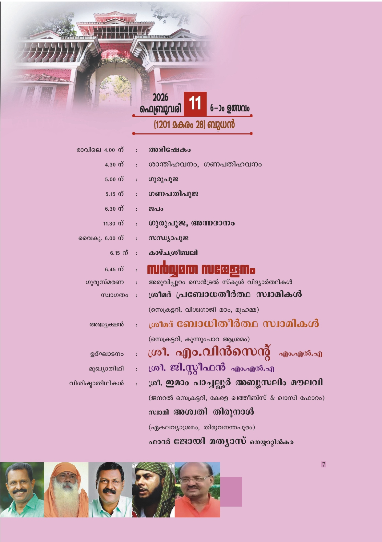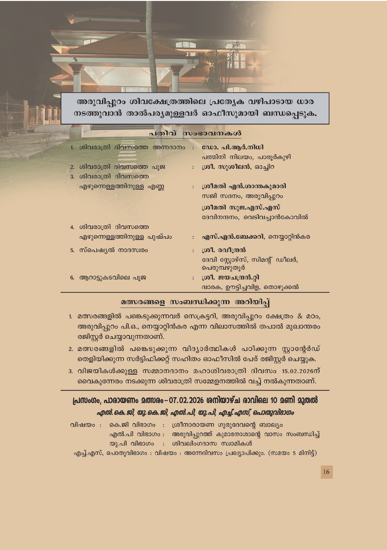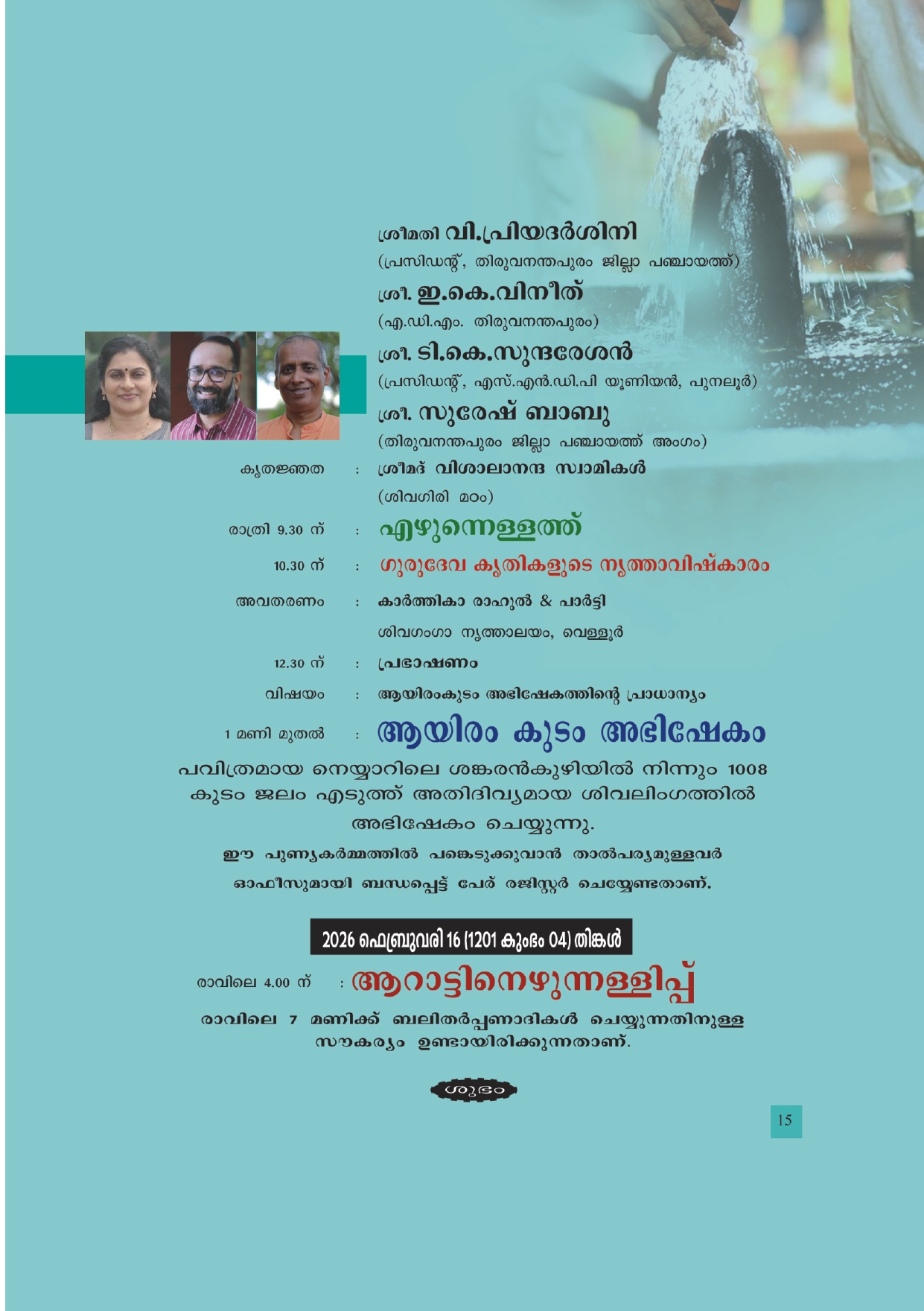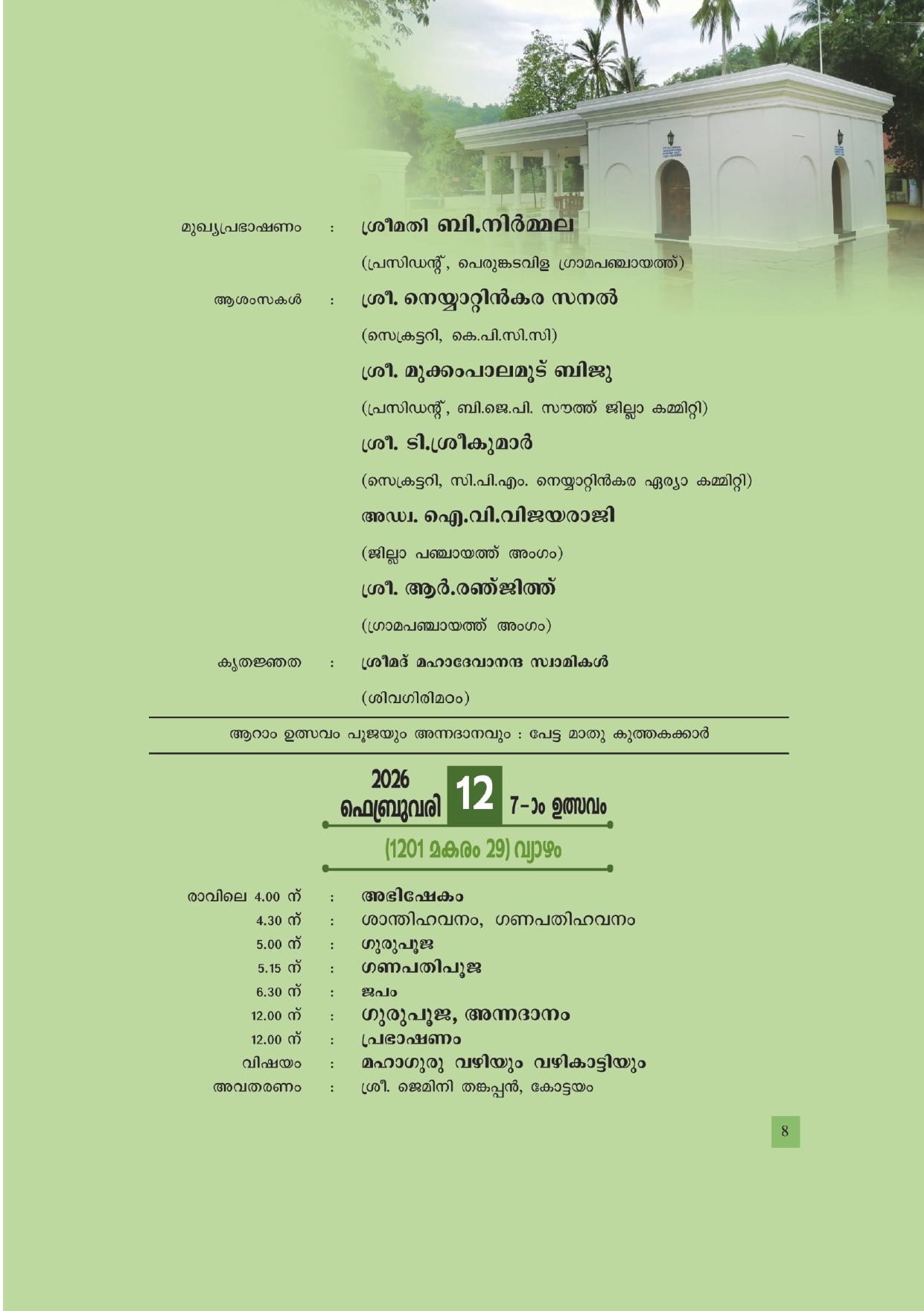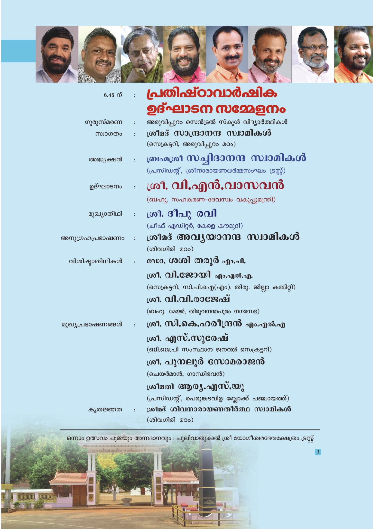 അരുവിപ്പുറം മഠത്തിലെ 138 - മത് പ്രതിഷ്ഠാ വാർഷികവും മഹാശിവരാത്രി ആഘോഷവും